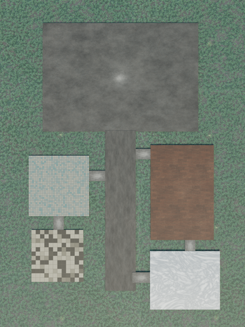 With all the textures made and rendered out i made larger versions of them so that when scaled up it wouldn't pixelate and look weird. I started with the grass and created 2 larger version with differing seeds on the particle system so that when put together similar patterns in the grass couldn't be seen. After that i then layered a larger version of the concrete texture over the grass to create the main area of the warehouse then using a smaller version of the concrete to make the corridor that the play will use to access other parts of the map. After adding the workers longue/kitchen I thought that there was more space to add another room so I then created the reception area to give more manoeuvrability for the player. once i built the map out in blender I rendered 2 versions of the map out with two different HDRI's this was an important choices as lighting is important and will dictate the atmosphere of your game and how the player experiences it so I decided to get with the second render as the back ground for the game.